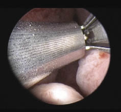 The operative technique goal is to create a continuous channel through the anterior prostatic fossa from bladder neck to veru montanum. Systematically, implants are delivered to both right and left lateral lobes advancing from approximately 1.5 cm distal to the bladder neck. After each set of implants the prostate is assessed cystoscopically; if a continuous channel is then observed, the procedure is deemed complete. The urethral mucosa can be quite fragile, and bleeding easily obscures vision. Care is taken throughout the positioning procedure to avoid trauma to the urothelium.